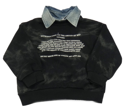 Čierna batikovaná mikina s nápisom a rifľovým golierikom