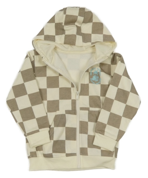 Krémovo-sivá kockovaná prepínaci mikina s palmou a kapucňou Dunnes