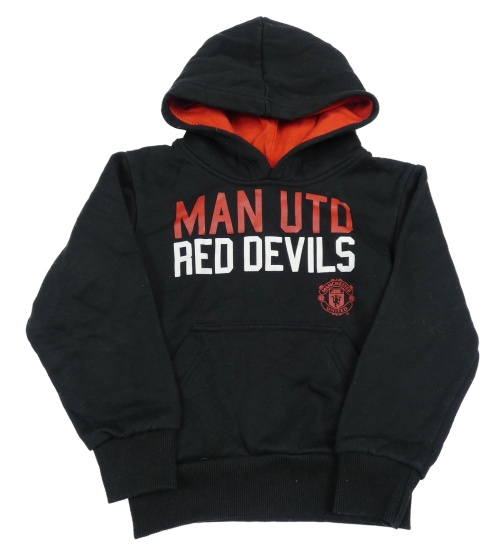 Čierna futbalová tepláková mikina s nápisy - Manchester United a vreckom a kapucňou