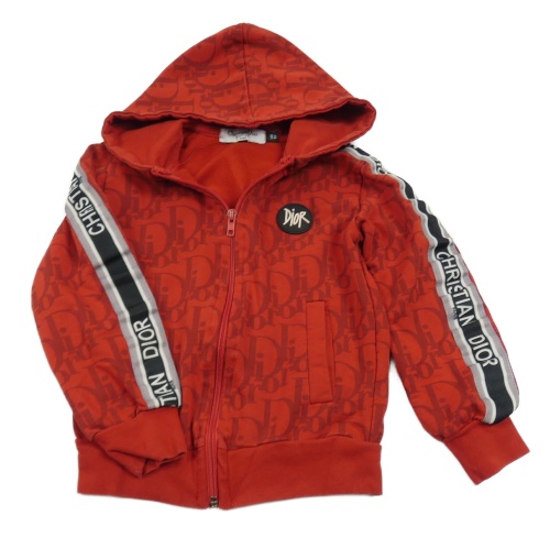 Červeno-sivo-čierna prepínaci mikina s nápismi a kapucí Christian Dior