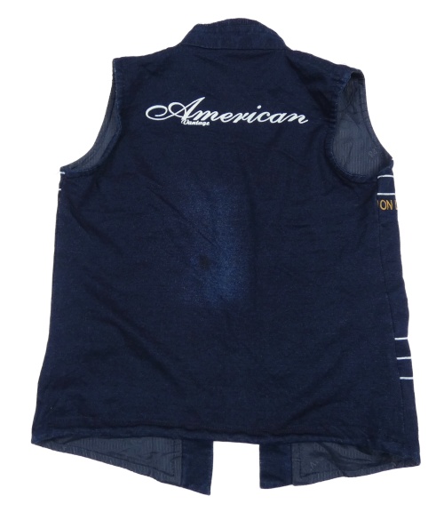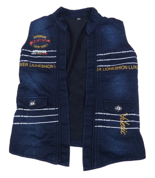 Tmavomodrá ľahká vesta s nášivkou a nápismi