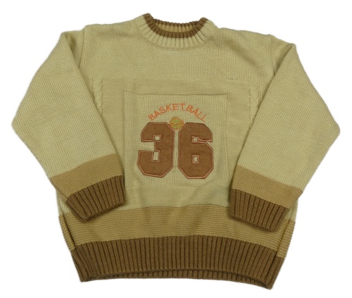 Béžovo-světlehnědo-hnedý pletený oversize sveter s číslom