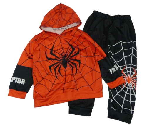 2set - Červeno-čierna ľahká mikina s pavoukem a kapucí + čierne ľahké tepláky