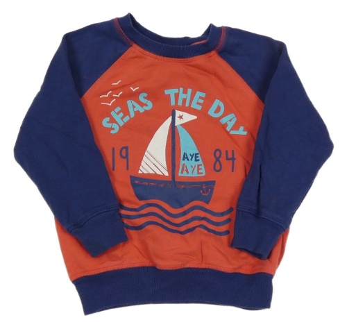 Červeno-tmavomodrá mikina s lodičkou a číslom a nápisom George
