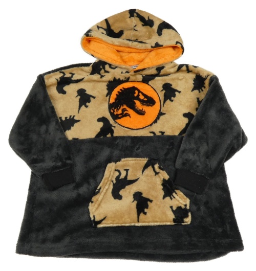 Béžovo-antracitová plyšová oversize mikina s diny a kapucí - Jurský svět