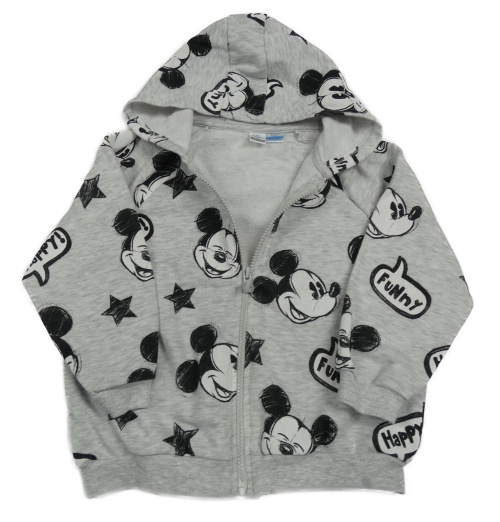 Sivá melírovaná prepínaci mikina s Mickeym a kapucňou