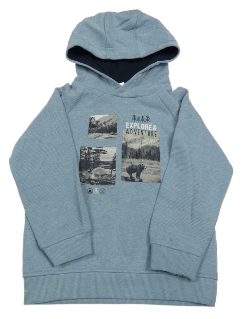Modrá melírovaná mikina s medvedíkom a stromami a kapucňou Topolino
