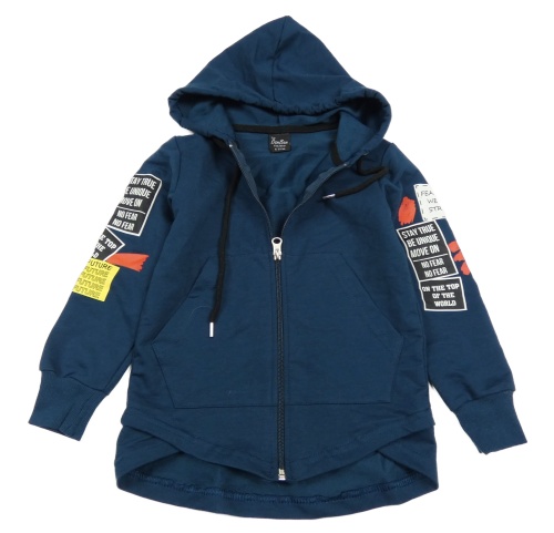 Tmavopetrolejová prepínaci mikina s nápismi a kapucňou