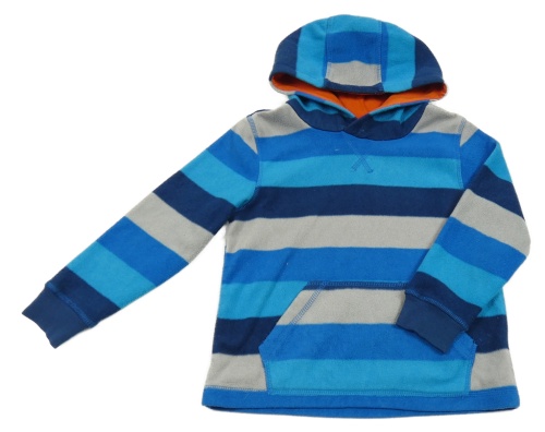Modro-svetlosivá pruhovaná fleecová mikina s vreckom a kapucňou F&F