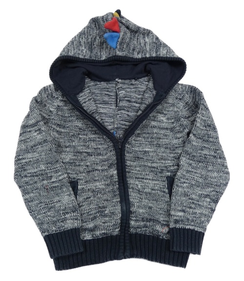 Tmavomodrý melírovaný prepínaci sveter s ostny a kapucňou Tu