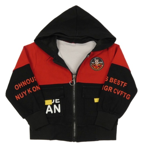Červeno-čierna prepínaci mikina s nápismi a kapucňou