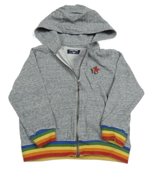 Sivá melírovaná prepínaci mikina s nášivkou, prúžkami a kapucňou Next