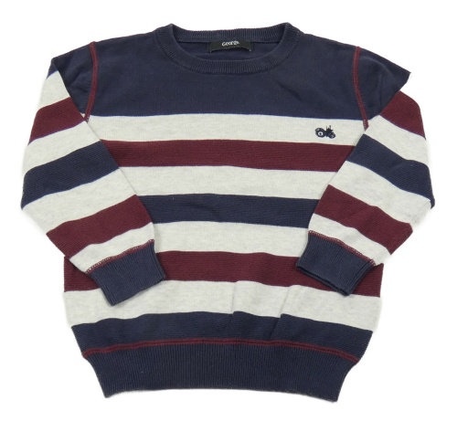 Tmavomodro-svetlošedá -vínový pruhovaný sveter s výšivkou George