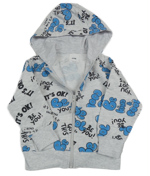 Sivá melírovaná prepínaci mikina s nápismi a kapucňou Sinsay