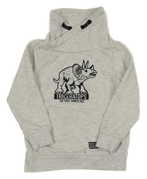Sivo-biela melírovaná mikina s dinosaurom a komínovým golierom Dopodopo