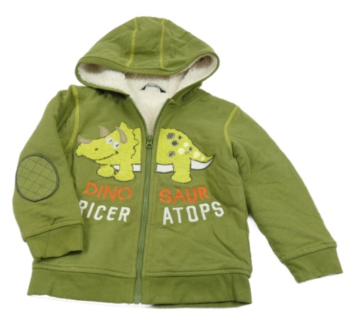 Olivová prepínaci zateplená mikina s dinosaurom a kapucňou George