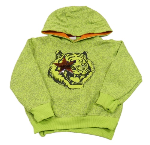 Svetlozelená mikina s nápismi a tigrom a kapucňou