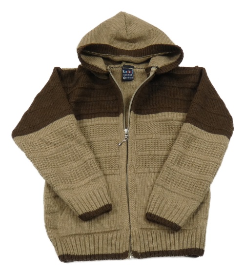 Hnedo-kávový vzorovaný rebrovaný pletený prepínaci sveter s kapucňou