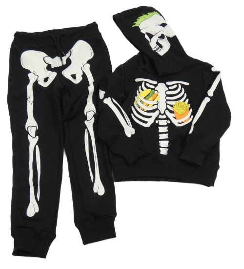 Nové - 2set - Čierna mikina s kostlivcem a kapucí + tepláky Dopodopo