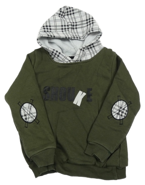 Khaki mikina s nápisom a kockovanou kapucňou