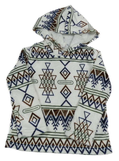 Bielo-modro-zelená vzorovaná plyšová mikina s kapucňou