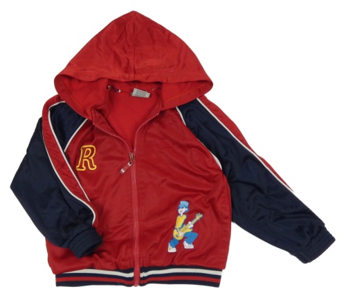 Červeno-tmavomodrá prepínaci športová mikina s kytaristou a kapucňou