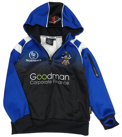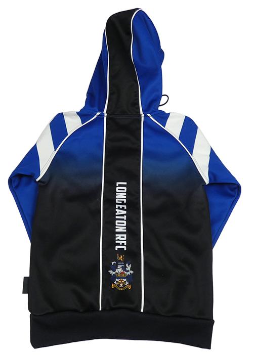 Safírovo-čierna ombré športová mikina s potlačou a kapucňou