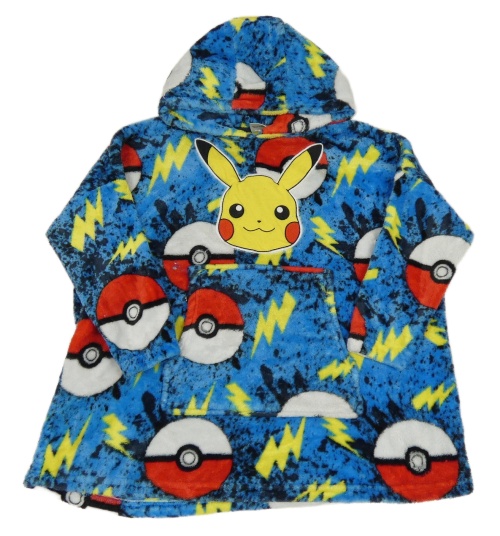Modrá skvrnitá chlpatá oversize mikina s Pikachu s Pokébally a kapucňou Matalan