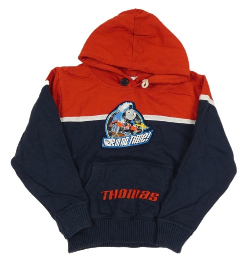 Tmavomodro-červená mikina s Thomasem a kapucňou