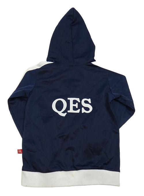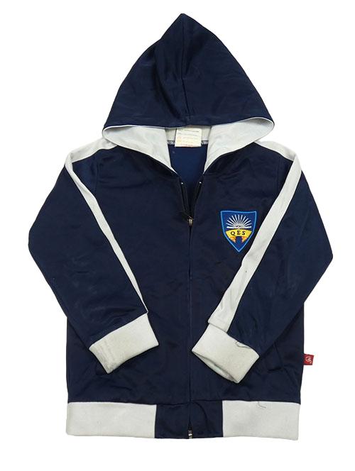 Tmavomodro-biela športová prepínaci mikina s nášivkou a kapucňou