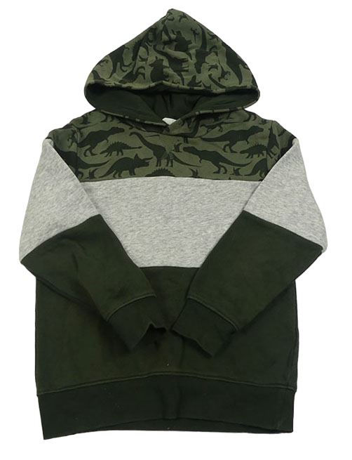 Kaki-sivá mikina s dinosaurami a kapucňou H&M
