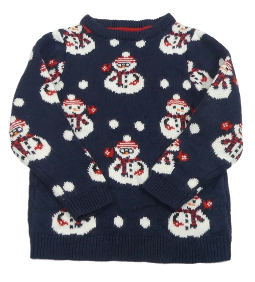 Tmavomodrý sveter so sněhuláky