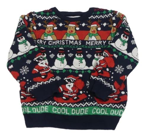 Tmavomodrý vzorovaný vianočný sveter s sobmi a sněhuláky Primark