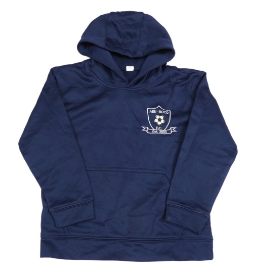 Tmavomodrá športová mikina s výšivkou a kapucňou