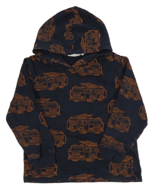Tmavomodrá mikina s hasičskými autami a kapucňou H&M
