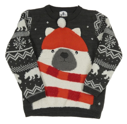 Antracitový sveter s medvěďom a vzorom George