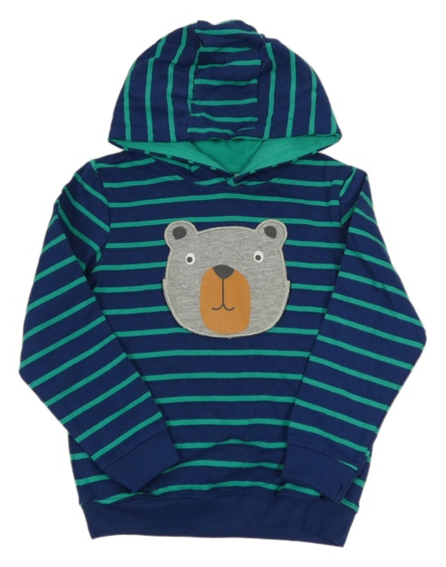 Tmavomodro-zelená pruhovaná mikina s medvedíkom a kapucňou Lupilu