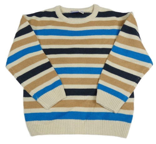 Smetanovo-hnedo-modro-tmavomodrý pruhovaný pletený pletený sveter lupilu