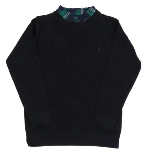 Tmavomodrý vzorovaný sveter s výšivkou a všitou košilí Next