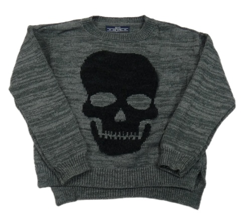 Tmavosivý melírovaný sveter s lebkou Matalan