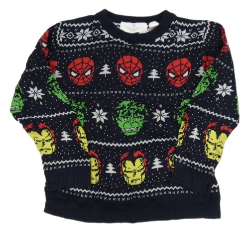 Tmavomodrý sveter so superhrdinami a norský vzorom H&M