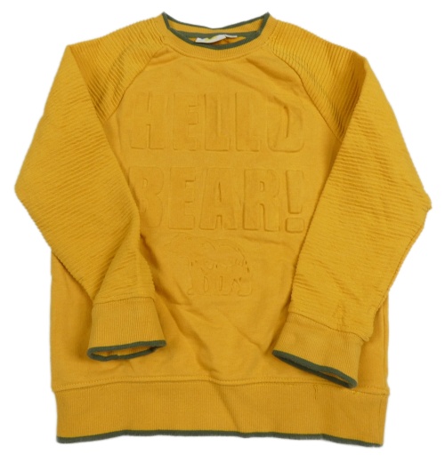 Horčicová mikina s 3D nápisy a medvedíkmi a rebrovanymi rukávy Kids