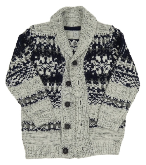 Bielo-tmavomodro-sivý vzorovaný prepínaci sveter TU