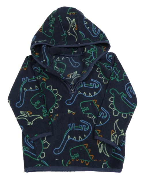 Tmavomodrá fleecová mikina s dinosaurami a kapucňou M&Co