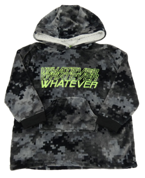 Tmavošedo-čierna vzorovaná chlpatá oversize mikina s nápismi a kapucňou Primark