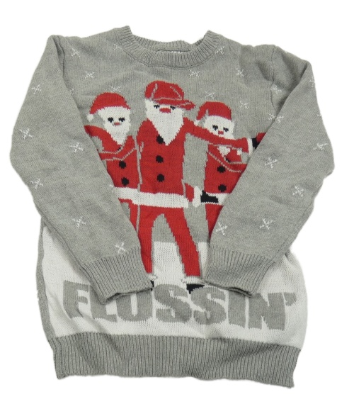 Sivý sveter s vločkami a Santou