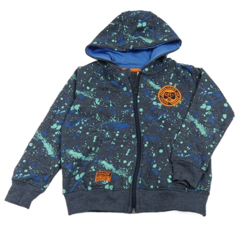 Tmavomodro-mátová vzorovaná prepínaci mikina s nášivkou a kapucňou