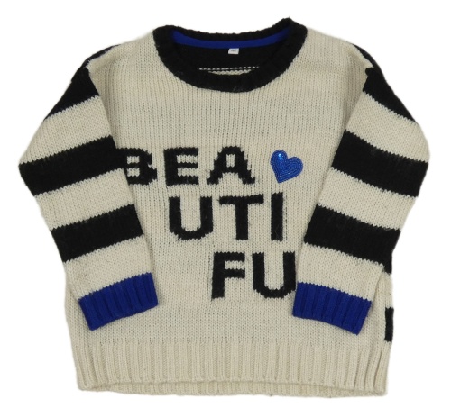 Smetnaovo-čierny vlnený sveter s nápisom a pruhovanymi rukávy M&S