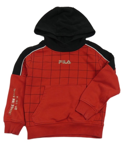 Červeno-čierna mikina s kockovaným vzorom a kapucňou Fila