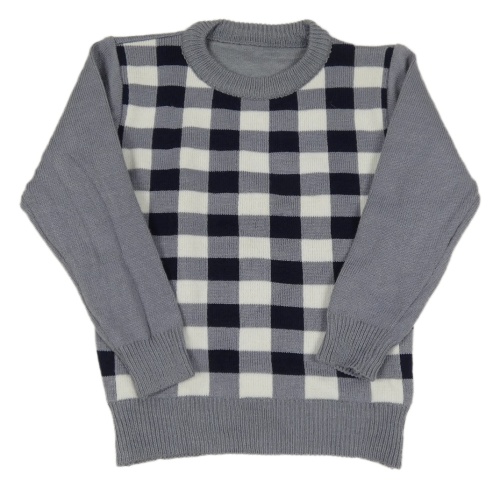 Sivo-bielo-tmavomodrý kockovaný sveter